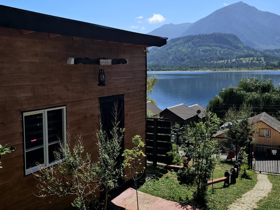 completa, terraza con vista al Lago Ranco, playa Huequecura y al imponente cerro